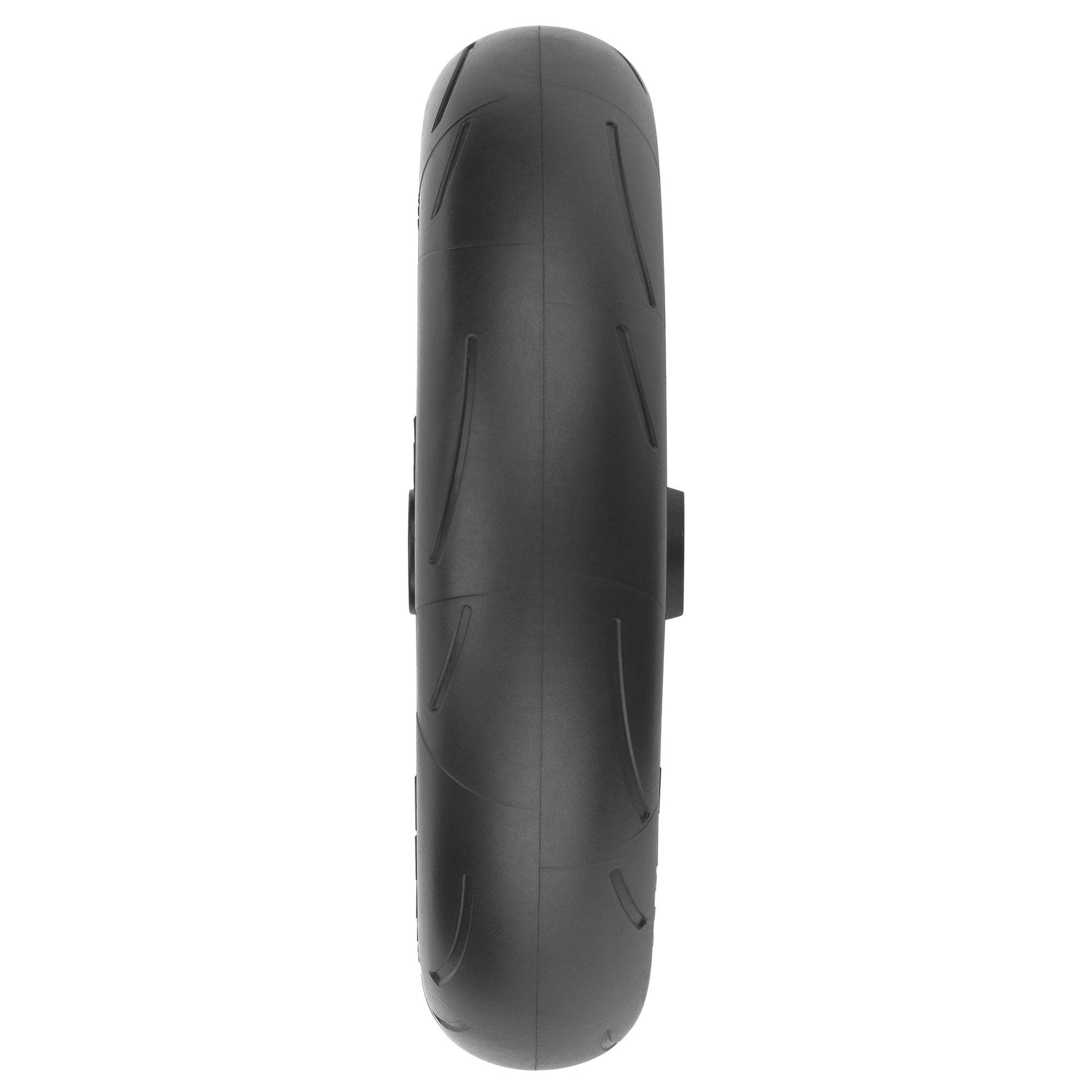These semi-slick tires completely change the look and handling of your PROMOTO-MX, providing superior grip on asphalt and other smooth surfaces. This allows you to carve better apexes, pop better wheelies, and rocket around your track, street, driveway, or parking lot with precision and style.