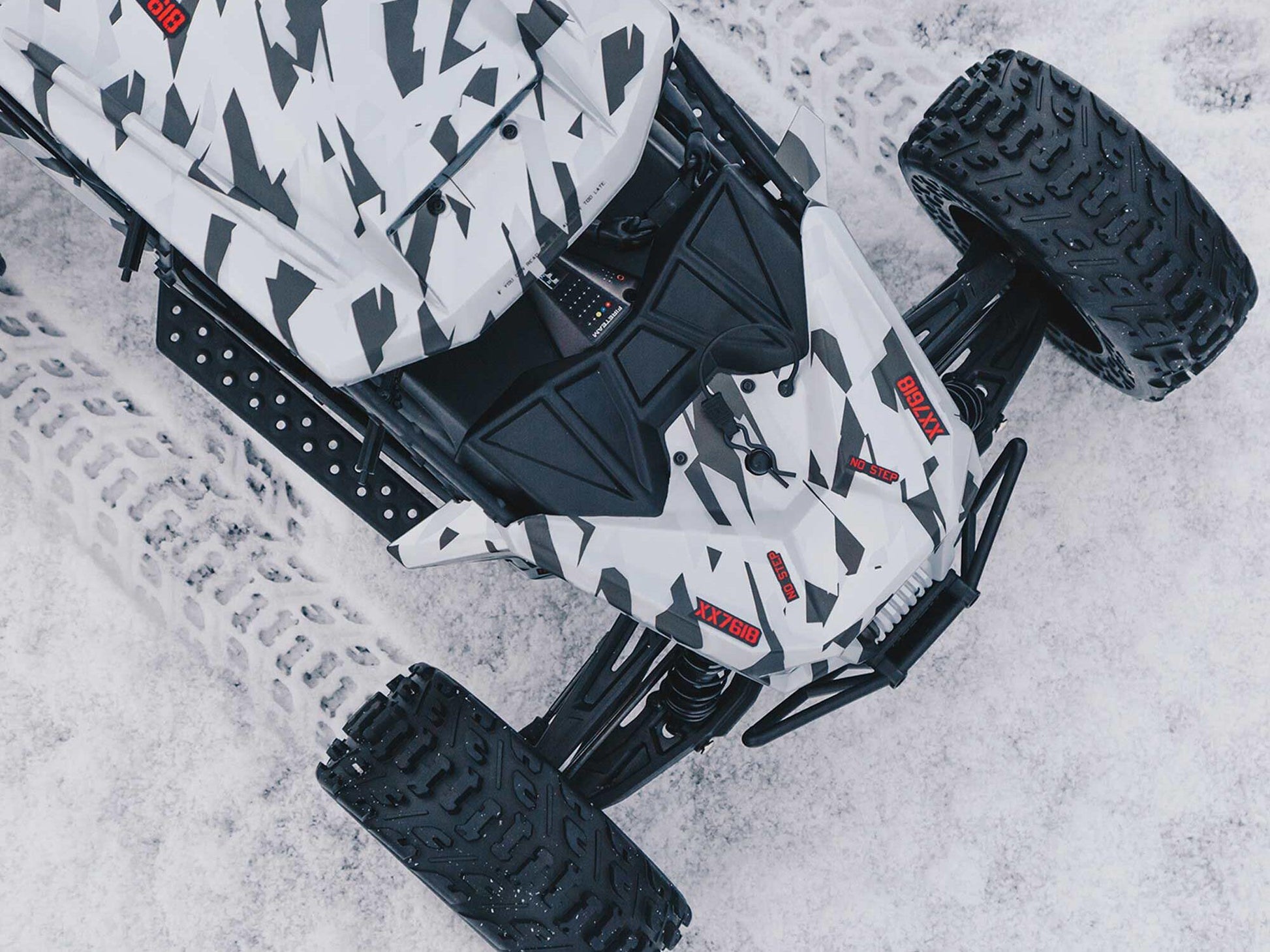 The Traxxas XRT fuses race-inspired design and engineering with X-Maxx power and strength. The result is an all-new platform with sharp reflexes and unprecedented stability that is capable of exploiting the upper range of extreme 8s power and speed.
