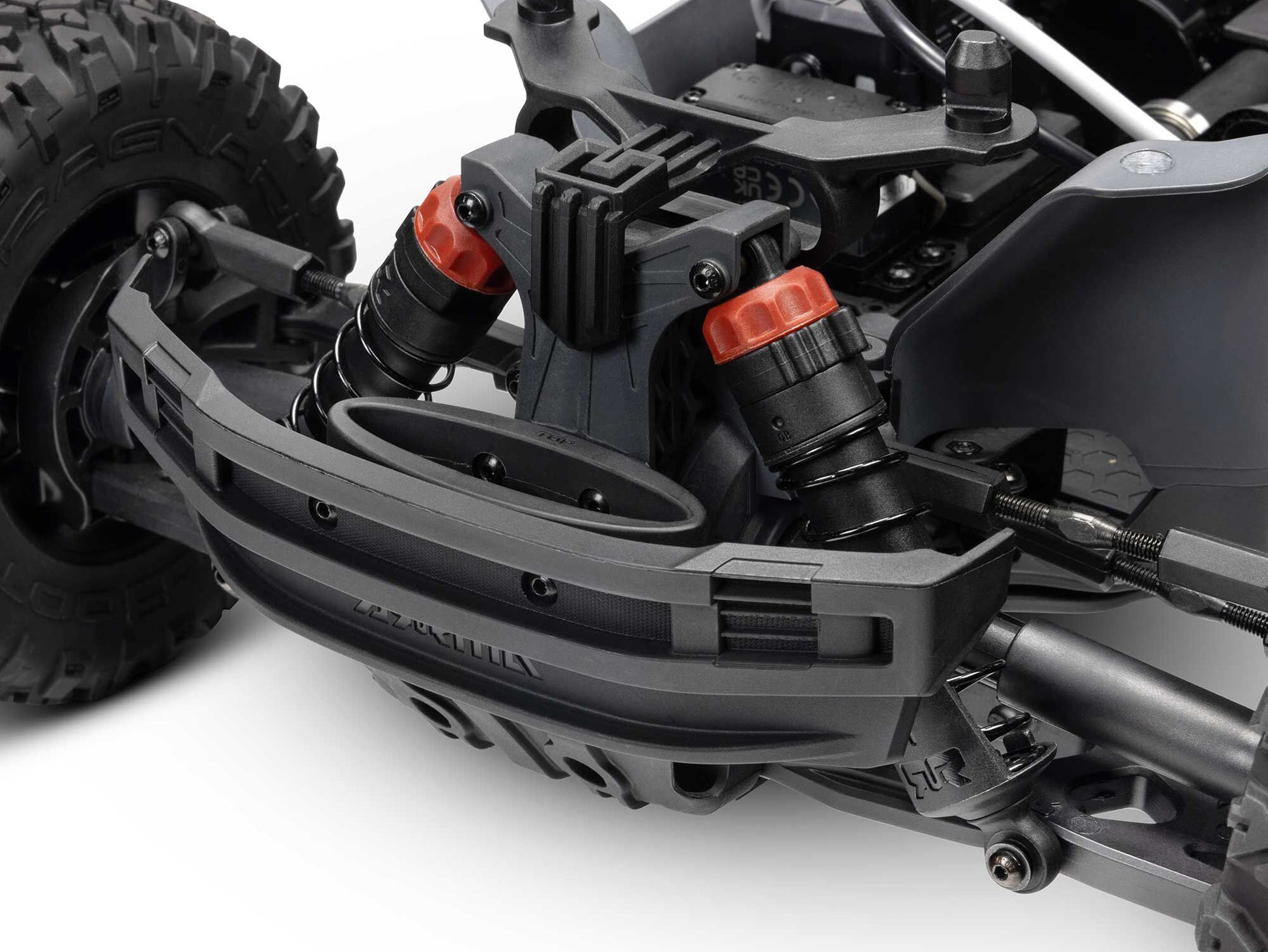 ARRMA developed the 223S series especially for brushless bashing newcomers who want to grow from 2S to 3S power without needing expensive option parts or buying a whole new basher. On a 2S LiPo, the BIG ROCK 223S BLX 4X4 reaches 35+ mph top speeds. That speed matches or even beats the best that other manufacturers’ 2S bashers can do. Whenever you’re ready, switch to a 3S battery. Now you can unleash this monster truck’s full 50+ mph potential!