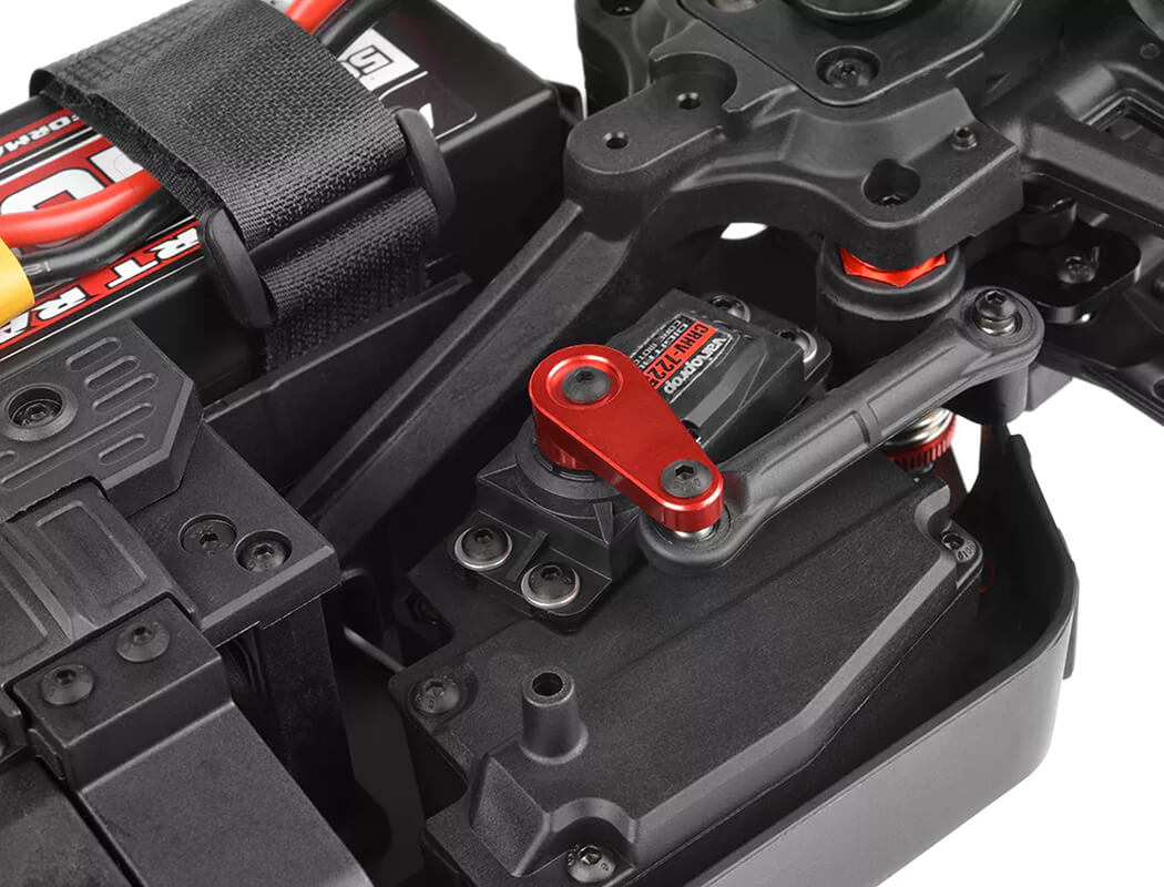 Straight out of the box, the Syncro is ready to hit the track. Its advanced PULSE G2 135 ESC delivers smooth, responsive power, while the powerful Kuron 725 brushless motor ensures you’ll always have speed to spare. With the robust HV7225 digital servo handling the steering, you’ll enjoy precision control on any terrain.