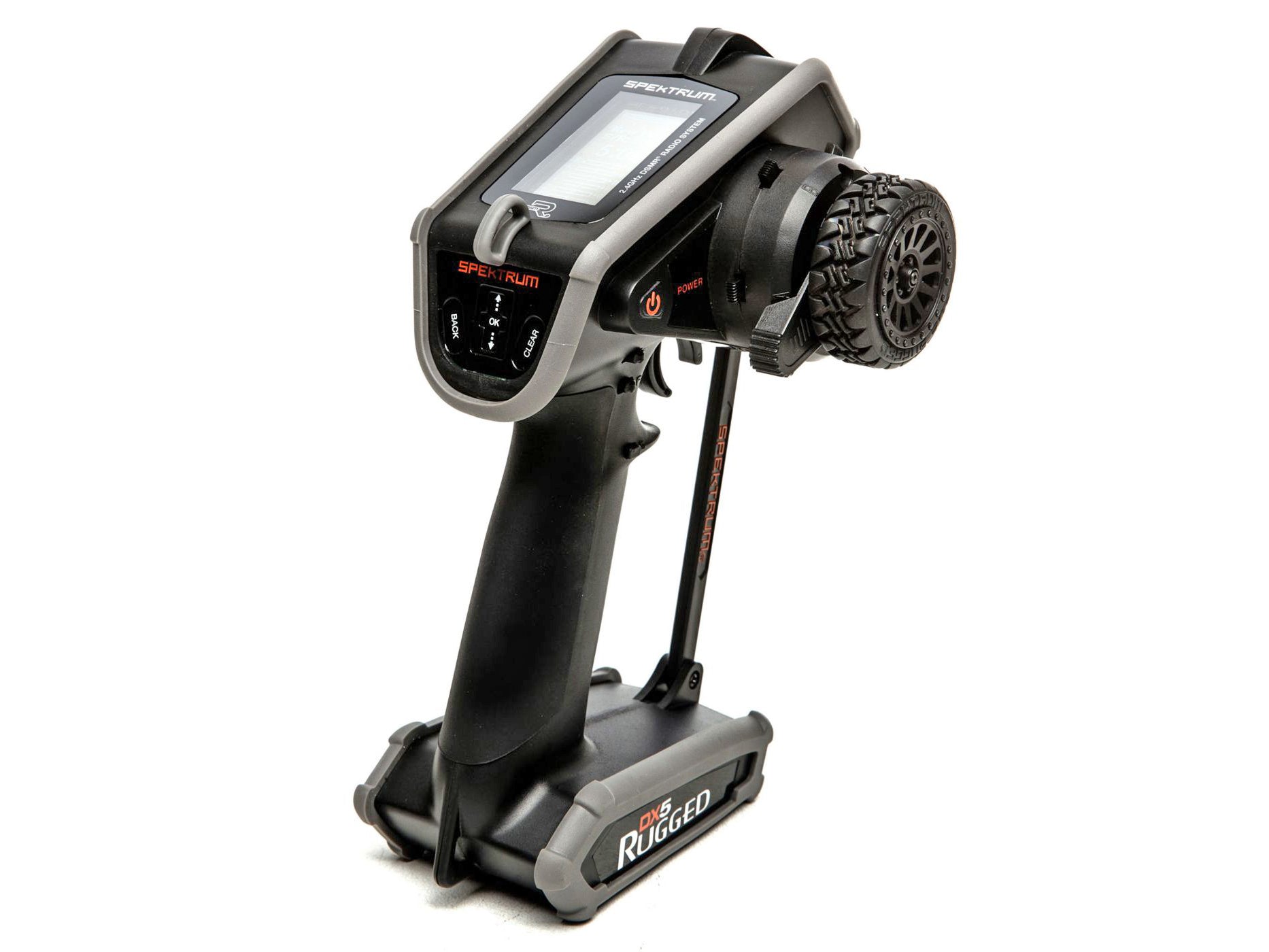 To conquer the wild, the DX5 Rugged gives you 5-channel versatility and hosts an array of auxiliary switches for lights, winches and more. Its interface features an innovative capacitive-touch control panel that offers a greater resistance to moisture and is easy to use. Simply slide your finger over the control panel and tap to select the menus, options and values on the easy-to-read LCD display. Integrated telemetry capability** allows you to view vital data such as motor RPM, vehicle speed, battery voltage and temperature right on the transmitter in real-time.No matter what you're driving, the AVC® technology programming capability in the DX5 Rugged can be easily tuned meet your skill level or driving style with control that makes it feel like you're at the wheel of a vehicle that handles predictably at every speed.