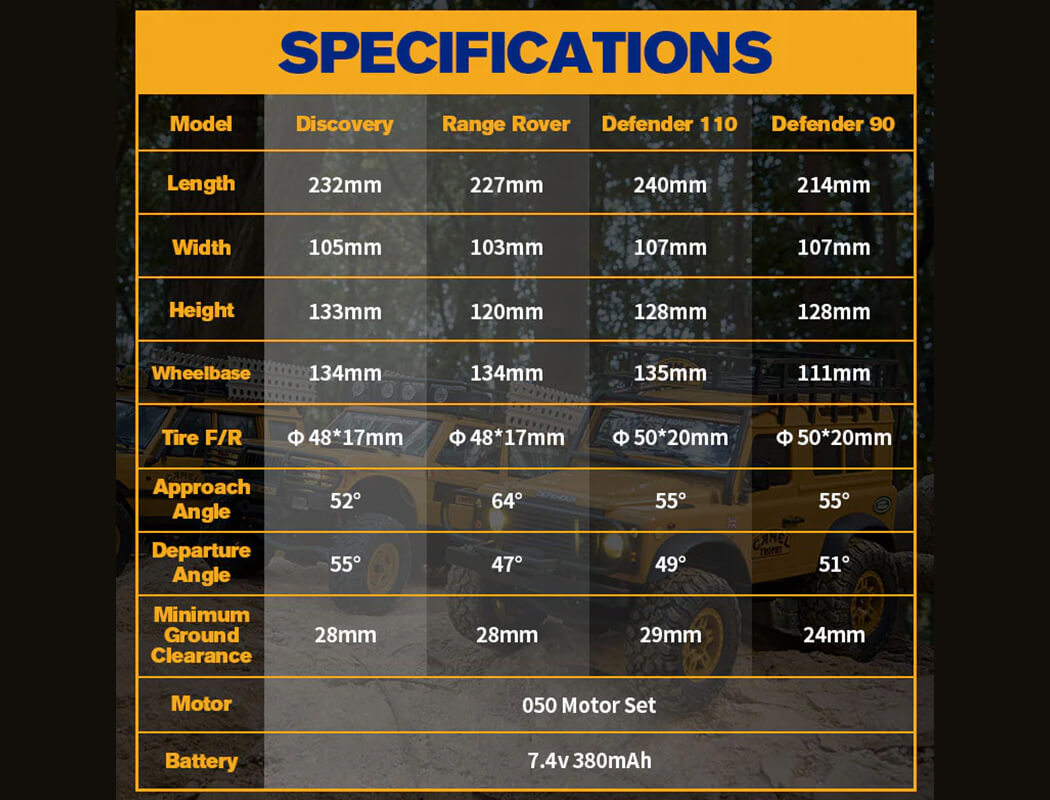 These models revive the epic history of the past, inviting you to experience the Land Rover RC family.