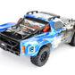 On top, the stylish semi-scale Trophy Truck Apache body features impactful graphics resulting in an eye-catching vehicle in either blue and red, topped off with moulded roof skid rails, roof LED light bar and rub-ber front mud flap.