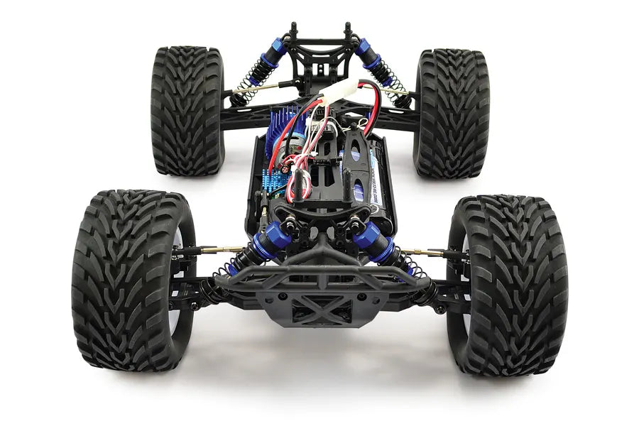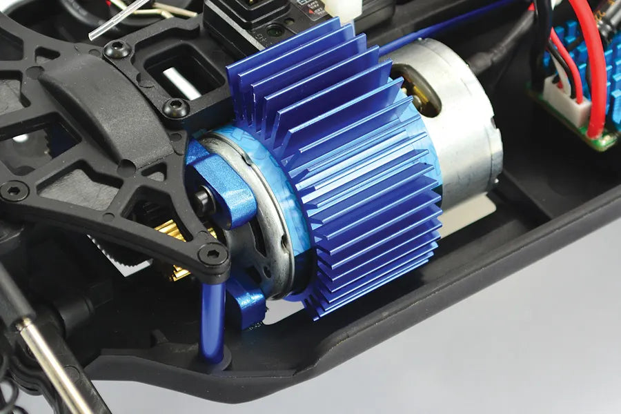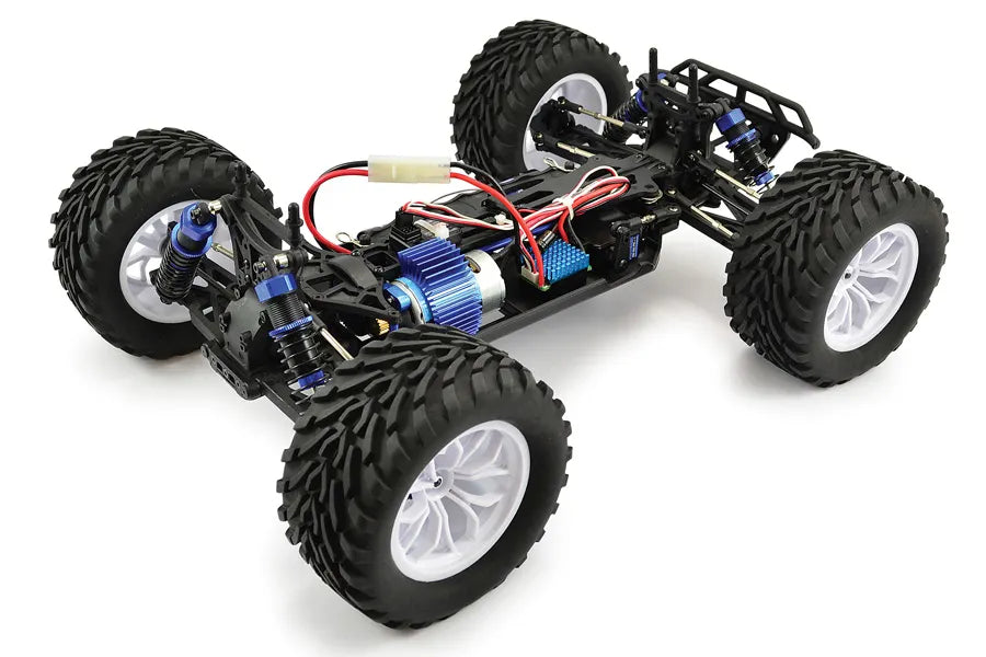 Control is via an Etronix 2.4ghz EX2 radio system, with power being provided via a brushed 550 motor, electronic speed control and a Voltz 1800mah NiMH battery, with steering being handled by a waterproof 3kg metal geared steering servo.