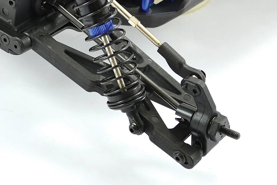 The 4wd shaft drivetrain features metal diff gears and front universal driveshafts, while an integrated slipper helps protect the drivetrain from possible damage under power. With adjustable turnbuckles all round and large bore oil filled shock absorbers the Bugsta can be tuned to suit you or the surface.