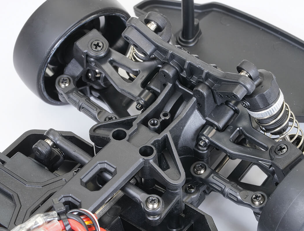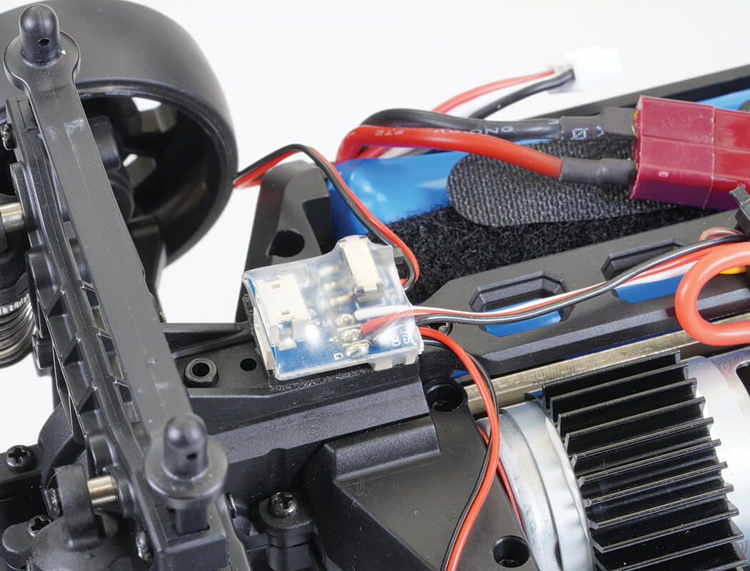 A fully proportional throttle and steering servo provide smooth and accurate control, while a shaft driven 4wd drivetrain, front and rear geared differentials, all supported by precision ball bearings handle the power from the 390 sized brushed motor and 2S 7.4V Li-Ion battery pack.