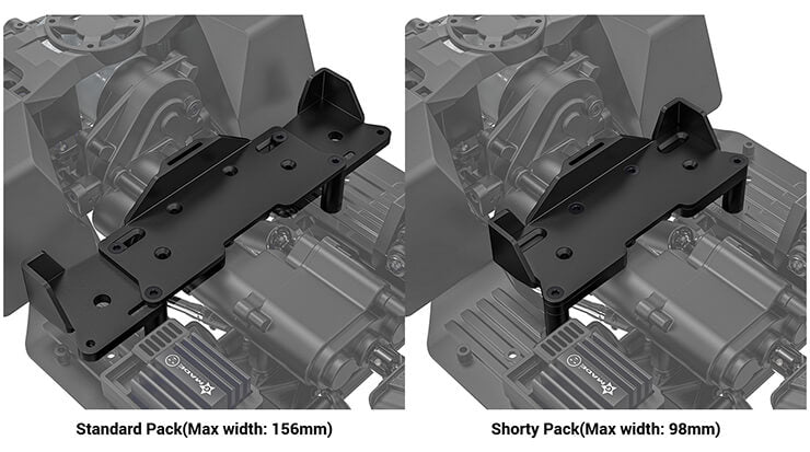 Size changing battery tray of the GS02F chassis can hold all sizes of Lipo and Ni-MH batteries.