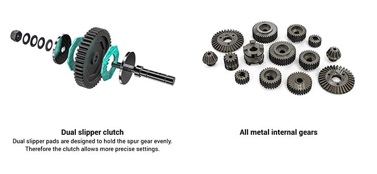 With the easy motor mount, users can easily replace and install the motor pinion gear for changing the gear ratio.
