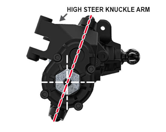 High steer knuckle arm system increases the approach angle, so the vehicle can climb over the obstacles more easily than typical trucks.