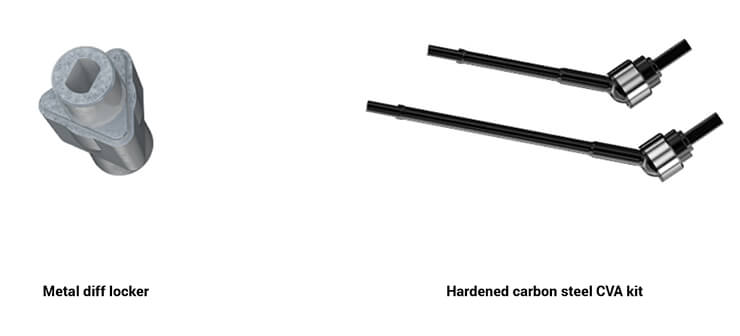 The GA44P axle is using Zero-ackerman steering system with CVA to ensure maximum performance with a short turn radius and smooth motion even on rough off-road terrain.