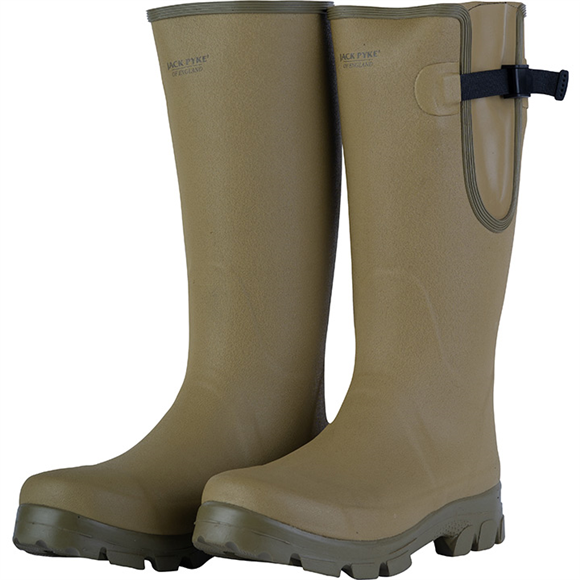 Based on a classic high wellie look the Jack Pyke Ashcombe Gusset Wellington is a combination of style and comfort. Using high grip sole means the wellies are stable on a muddy ground. The boots are lined with 3mm Neoprene which was originally used to create diving suits, it will help keep your feet warm and cosy. For easy removal we added a removal lug at the back of each wellington. At the top you will find a gusset with a buckle adjuster allowing to fine-tune the wellie to your leg.