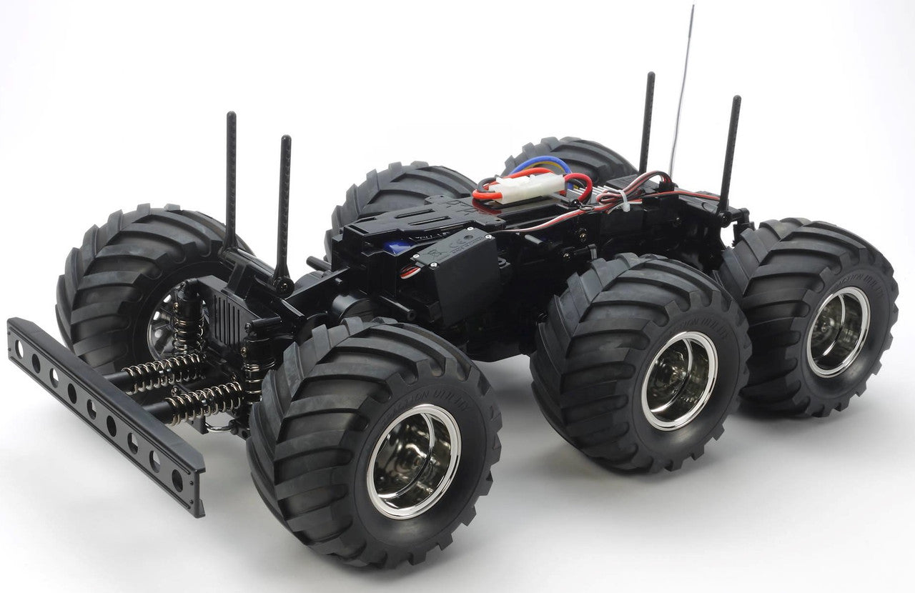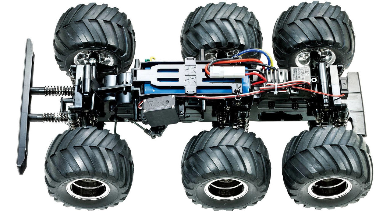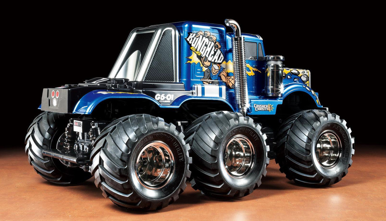 Its powerful gear-driven setup allows the Konghead to take on slopes of up to 40 degrees -the perfect outdoor drive! A host of metal-plated parts includes air cleaners and exhaust (both from the Bullhead), plus chrome-plated deep rim wheels.