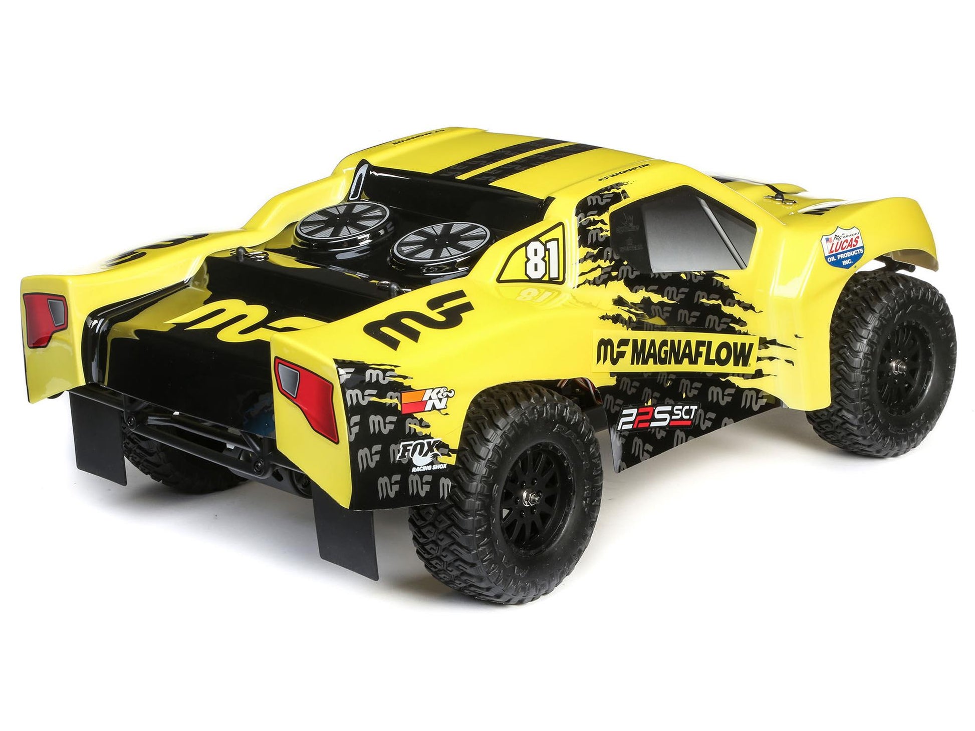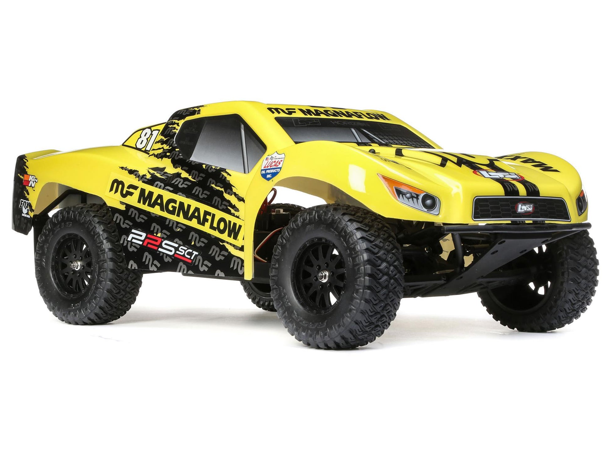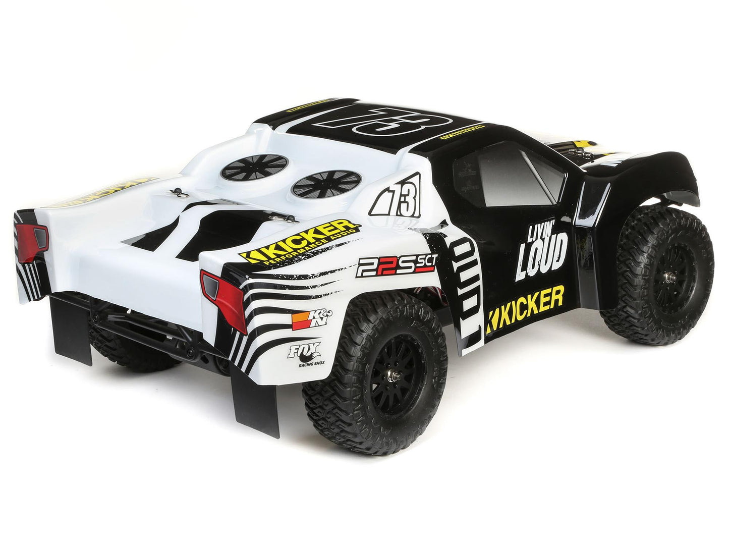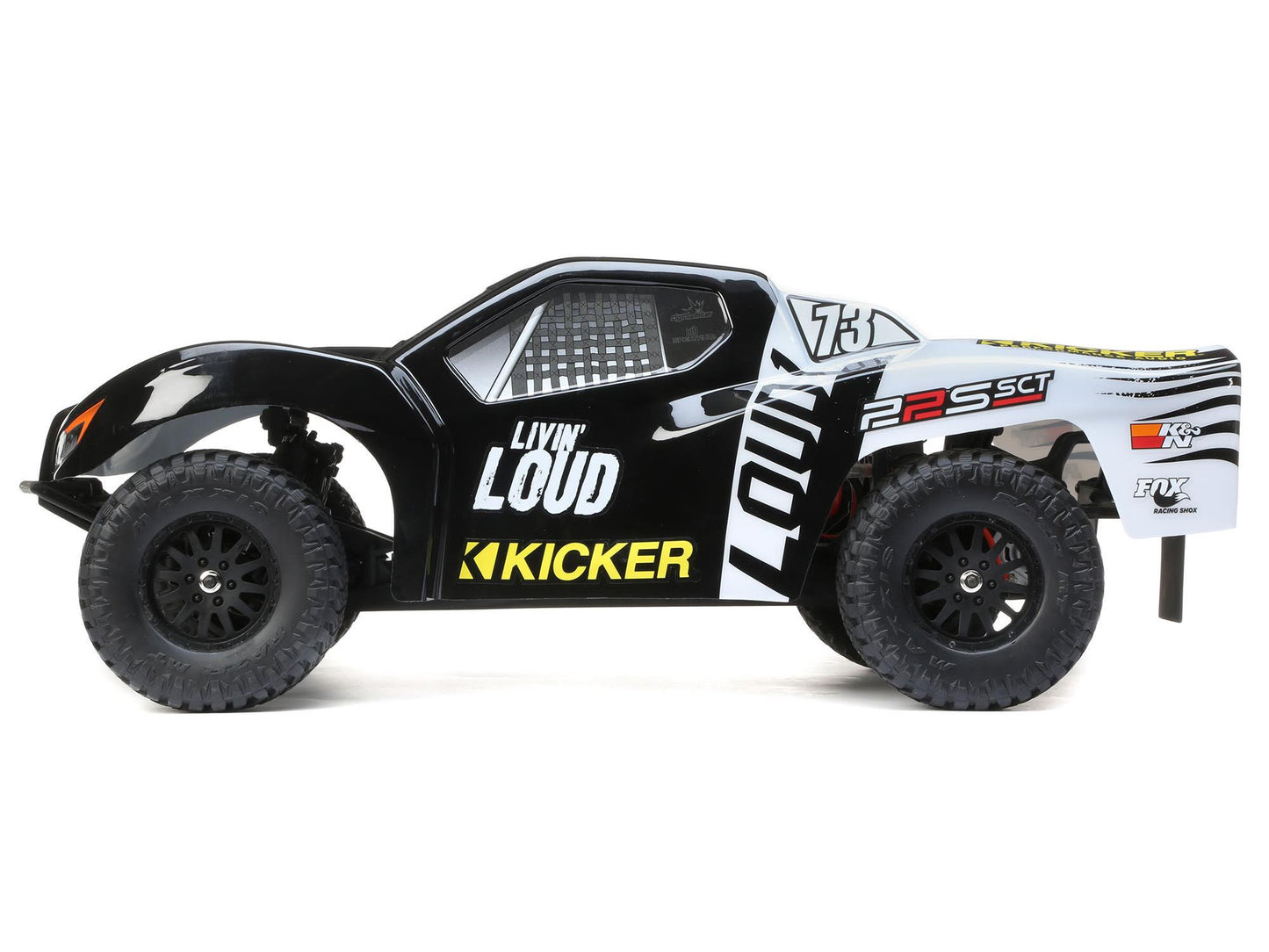 Looking for the best vehicle to get started in the RC Hobby? The Losi® 22S SCT RTR is the perfect vehicle for new RC enthusiasts looking to capture the thrills of big air, blazing speeds, and responsive cornering. Based on the Team Losi Racing® 22 race platform, the 22S SCT features all the fun and performance of its predecessors making it the perfect Ready-to-Run vehicle to not only maximize performance bashing in the backyard, street or park, but to be the perfect entry level race truck for your local R/C race track. The Losi engineering team applied the race-proven suspension geometry of the TLR 22SCT to the 22S SCT, giving it the handling ability needed to maximize performance everywhere. The powerful Dynamite® 12T 550 brushed motor provides great torque and top speed that will keep drivers coming back for more. With officially-licensed Magnaflow and Kicker Audio trim schemes, the 22S SCT looks the part while it's tearing up the terrain or crossing the finish line. Designed to be user-friendly, the electronics are hard mounted and the battery is loaded through the bottom of the chassis to help create a hassle-free user experience. Additionally, several Team Losi Racing 22 platform performance parts are available to upgrade the vehicles performance and style.