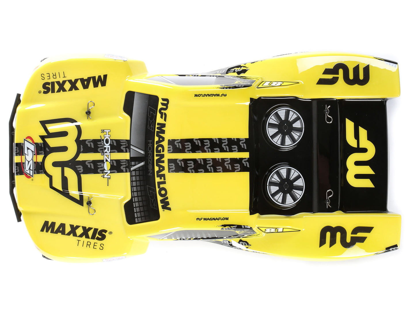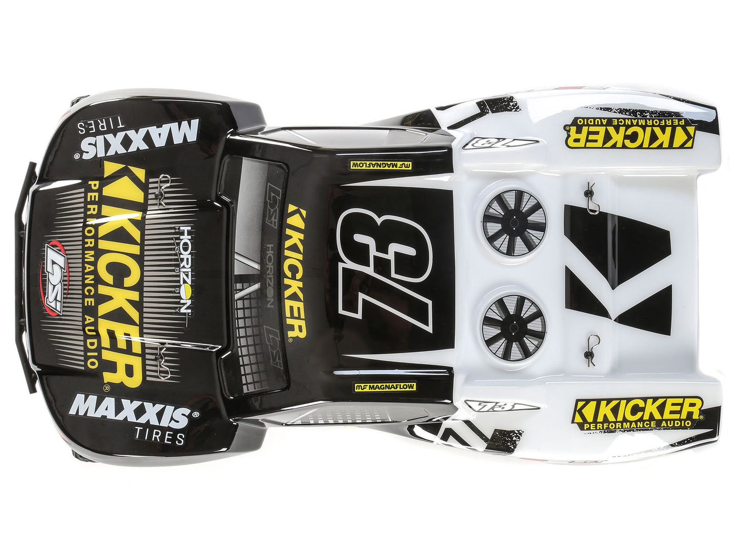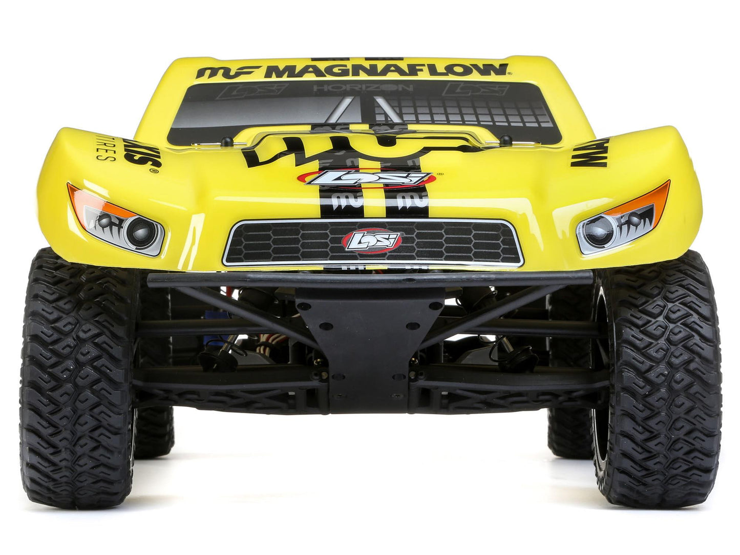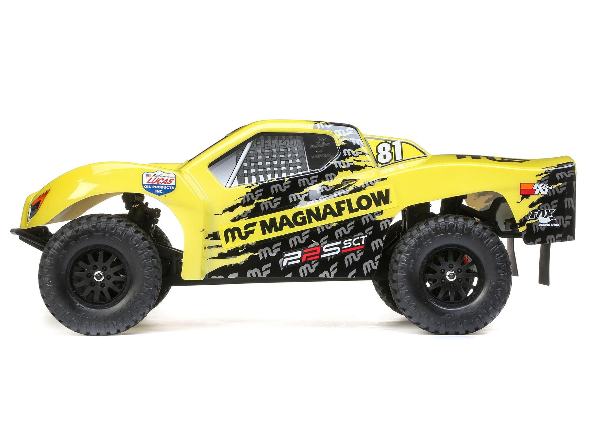 Looking for the best vehicle to get started in the RC Hobby? The Losi® 22S SCT RTR is the perfect vehicle for new RC enthusiasts looking to capture the thrills of big air, blazing speeds, and responsive cornering. Based on the Team Losi Racing® 22 race platform, the 22S SCT features all the fun and performance of its predecessors making it the perfect Ready-to-Run vehicle to not only maximize performance bashing in the backyard, street or park, but to be the perfect entry level race truck for your local R/C race track. The Losi engineering team applied the race-proven suspension geometry of the TLR 22SCT to the 22S SCT, giving it the handling ability needed to maximize performance everywhere. The powerful Dynamite® 12T 550 brushed motor provides great torque and top speed that will keep drivers coming back for more. With officially-licensed Magnaflow and Kicker Audio trim schemes, the 22S SCT looks the part while it's tearing up the terrain or crossing the finish line. Designed to be user-friendly, the electronics are hard mounted and the battery is loaded through the bottom of the chassis to help create a hassle-free user experience. Additionally, several Team Losi Racing 22 platform performance parts are available to upgrade the vehicles performance and style.