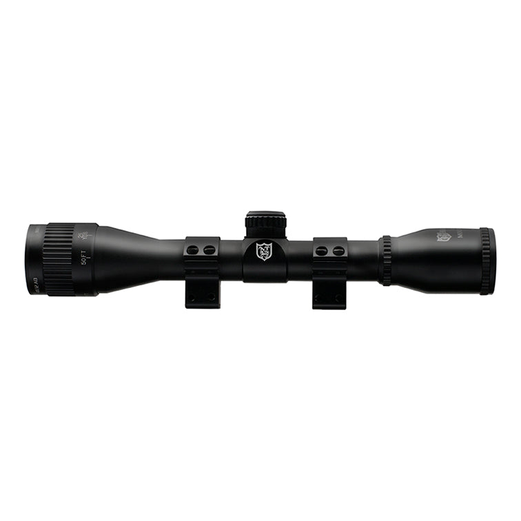 Nikko Stirling MountMaster AO Based on our popular MountMaster series with the added addition of a fully adjustable objective with adjustment from 10 Yards to infinity. Wide field of view with adjustable eye piece and std 1/4" adjustments. Ideal For Airgun, Rimfire and small centrefire Rifles. Supplied with Double Screw 3/8" Match Mounts and dust covers One Inch Tube Half Mil Dot Reticle 4x32