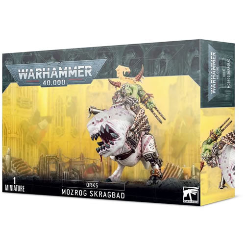 This multipart plastic kit is comprised of 43 components with which you can build the Beast Snagga Orks Character Mozrog Skragbad and his squigosaur, Big Chompa. Alternatively, this kit can be assembled as a Beastboss on Squigosaur. It comes supplied with one 80mm Citadel Round base. This miniature is supplied unpainted and requires assembly – we recommend using Citadel Plastic Glue and Citadel paints.