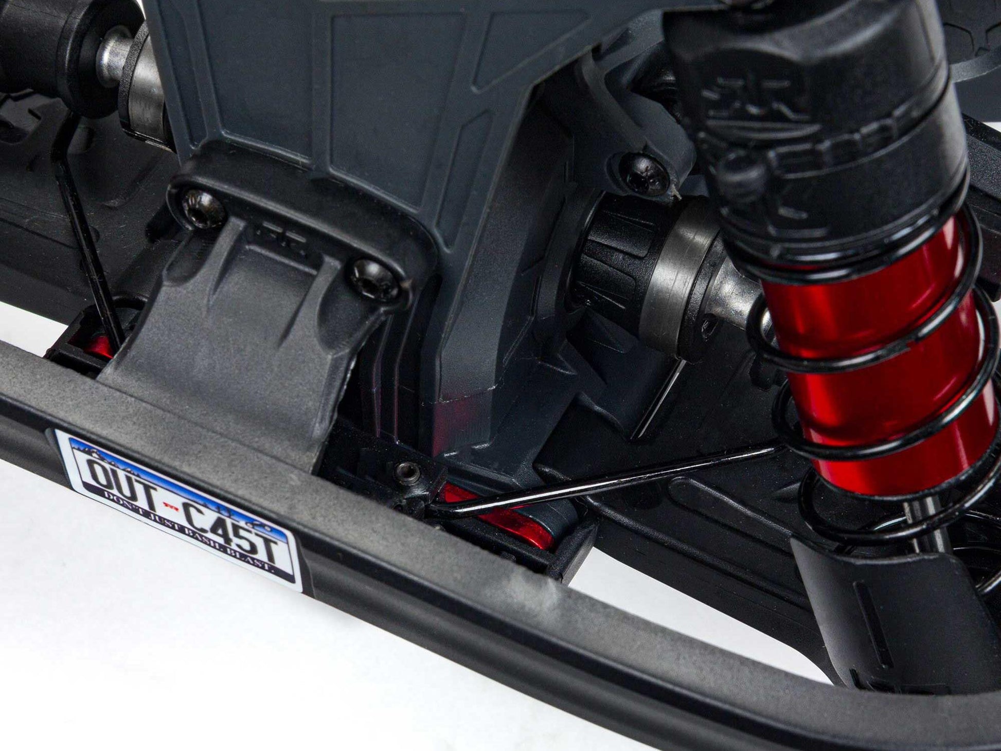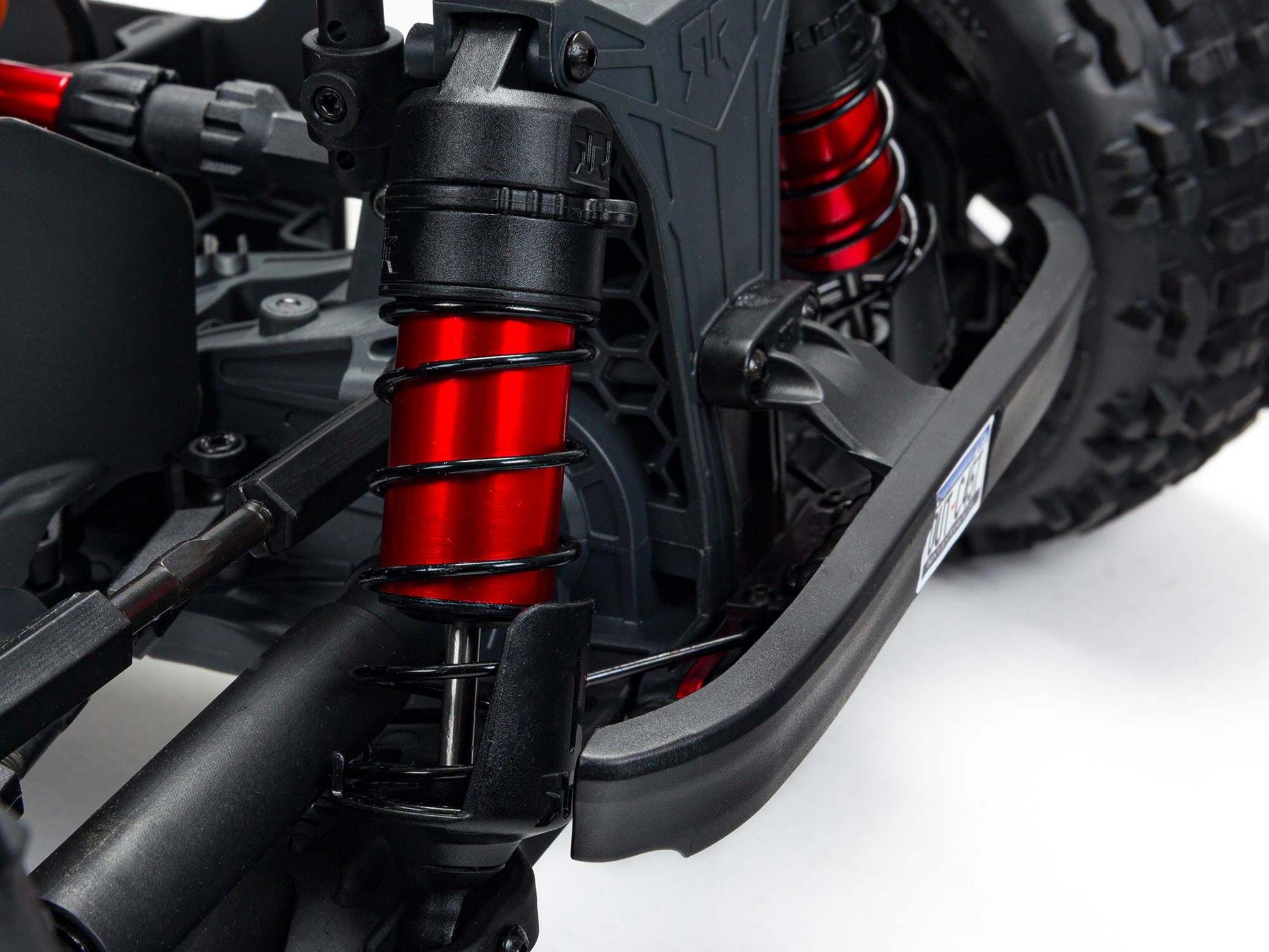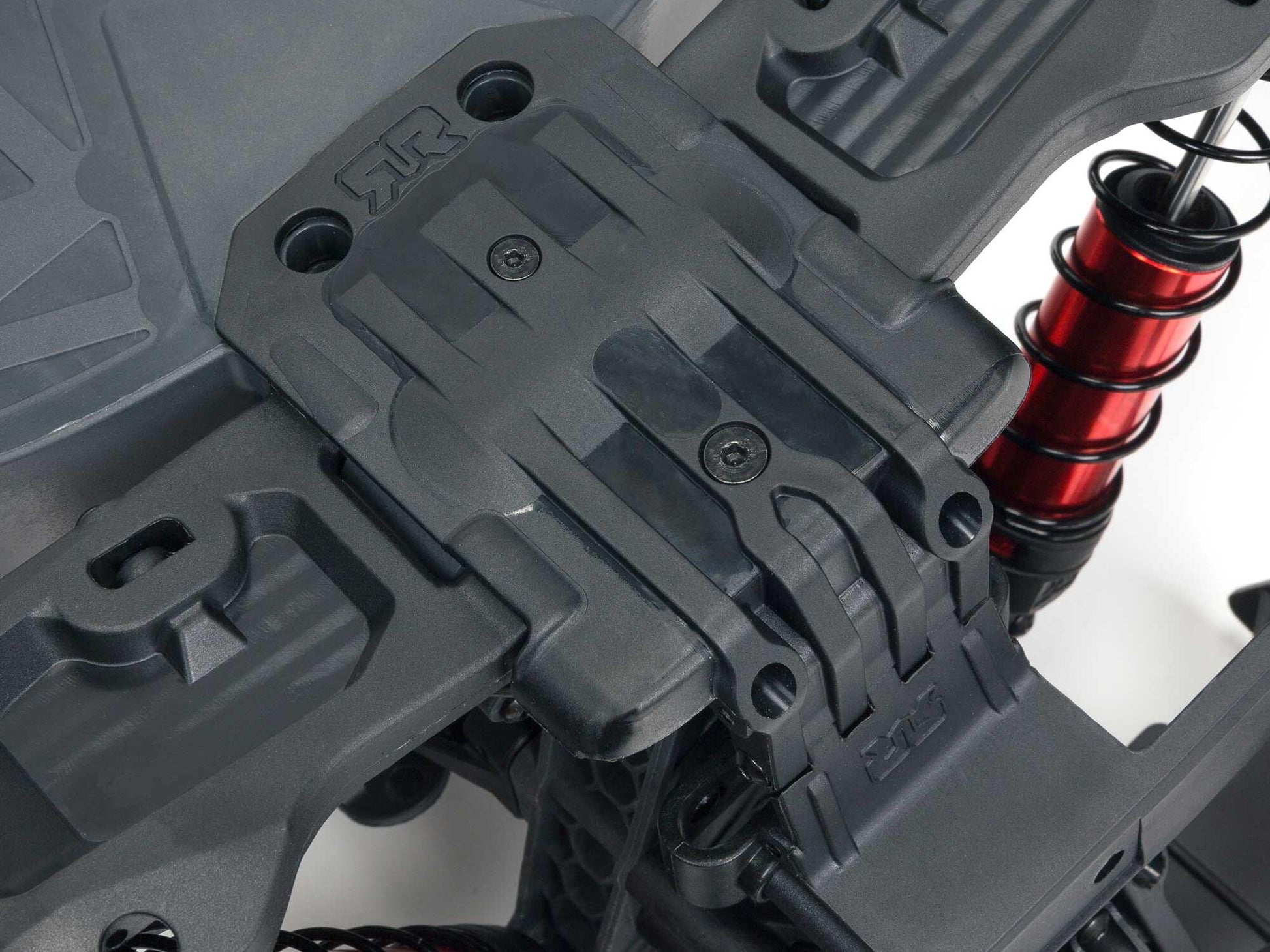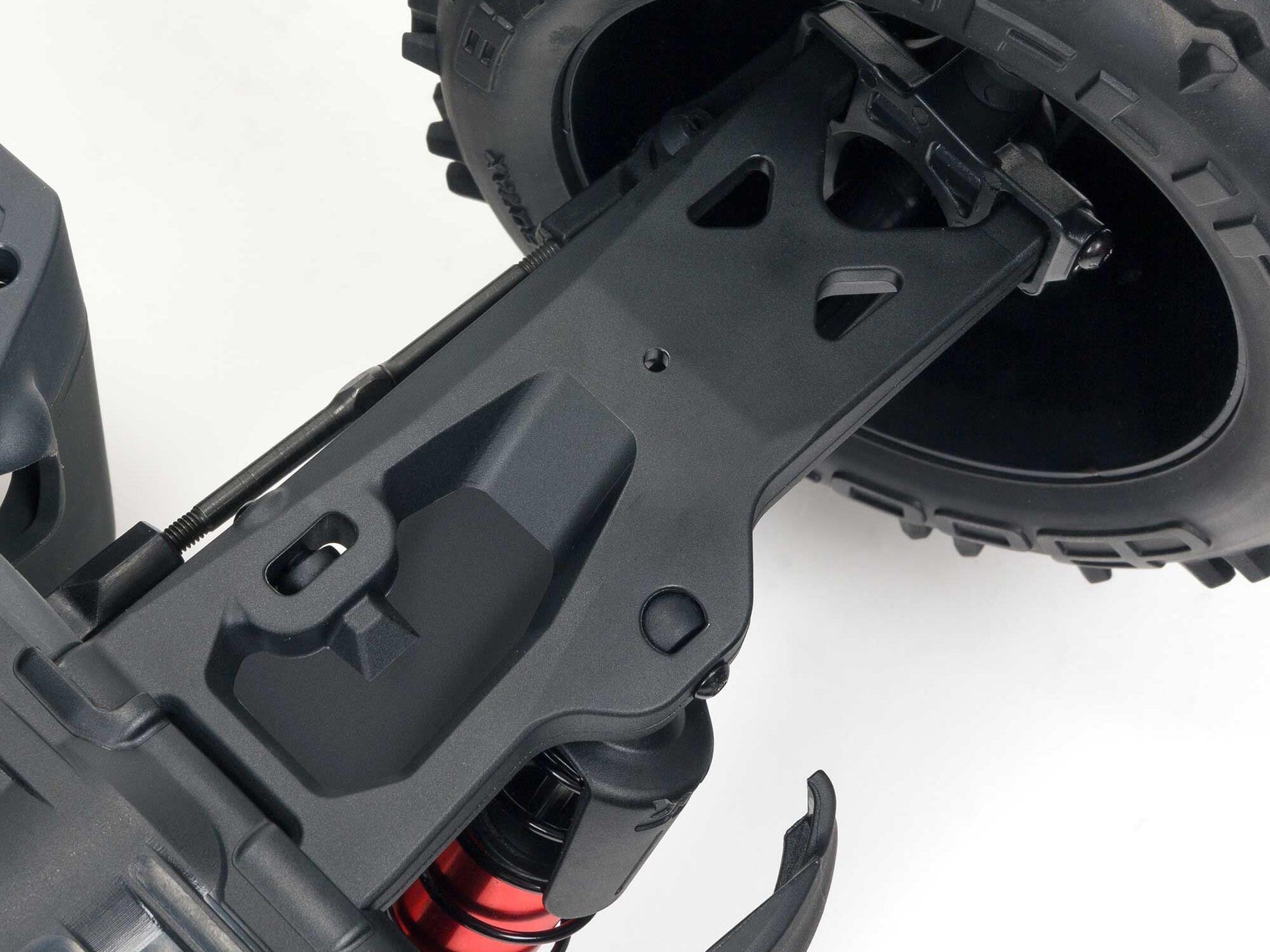 • Higher shock towers, longer shocks and wider suspension arms for longer, more plush suspension travel