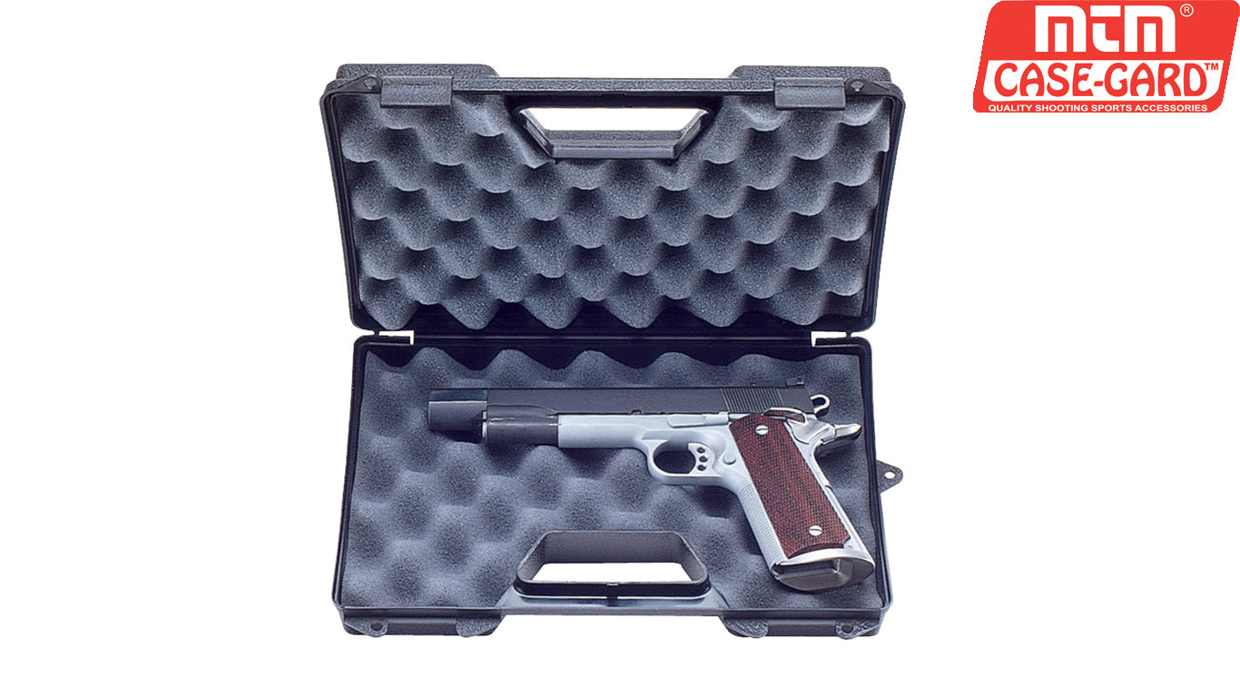 In 1986, MTM originated economical plastic single handgun cases for transporting handguns. The 806 came first and then following the next year, was the 808. Manufactured with tough extra thick polypropylene, they come with convoluted foam padding. Two piece handle to prevent inadvertent openings. The closet hanger feature gives you the advantage of temporarily hiding your firearm while it is not in use. These carriers offer protection a soft pistol blank could never offer. They also come with padlock tabs.
