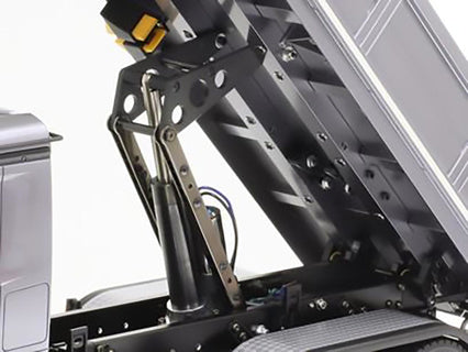 This actuator set is designed to complement the Mercedes-Benz Arocs 3348 Dump Truck. When using a 4-channel transmitter, the dump feature of the trucks bed can be fully controlled.