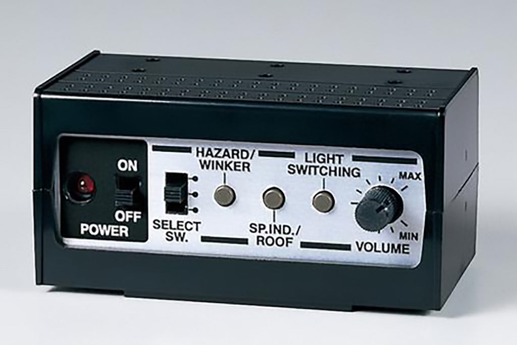 Multi-Function Control Unit (MFC-01) offers lights, sounds, and vibration in combination with R/C truck action, for a truly engrossing R/C experience. Engine sounds have been digitally recorded from an actual truck, and together with air horn, gear shifting, and many other realistic sounds, let you feel like you are driving the real thing. The unit is compatible with up to twenty total LEDs of nine different types: headlights, brake lights, and turn signal operation are also available at your fingertips. It features a built-in electronic speed controller function to allow smooth rides at speeds ranging from very low to standard.