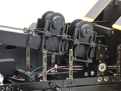 • This model’s front axles feature the first twin steering system seen in the Tamiya 1/14 Truck series.