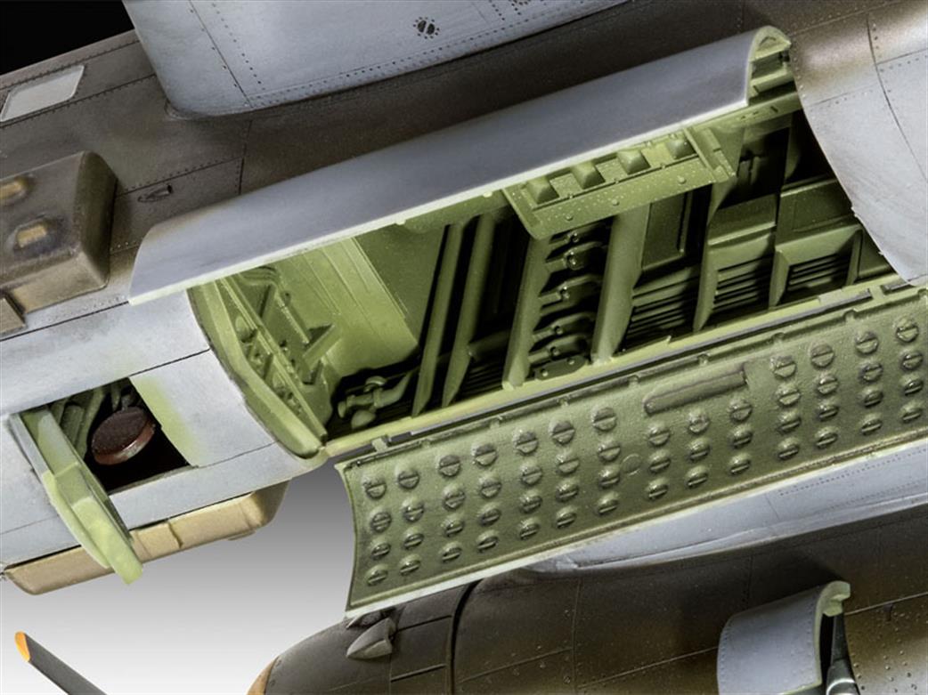 The B-25 "Mitchell" was a twin-engined, medium-weight bomber of the US Army Air Force in World War II. The Kansas City-built D version featured Wright R-2600-13 engines and a navigator pulpit. In addition, the bow armament was reinforced by a movable and a rigid 12.7 mm machine gun.