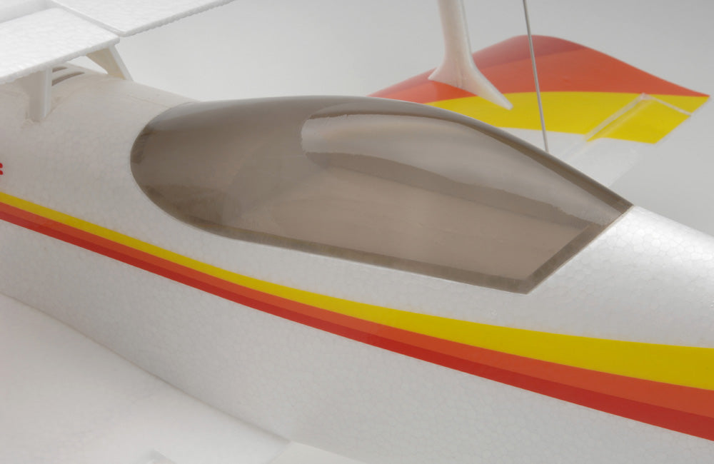 Using the latest in foam moulding technology you will notice the edges are very crisp and sharp without the weight penalty of a denser foam. The control surfaces use 'live' style moulded foam hinges but they also have plastic hinges moulded into the foam for extra security.