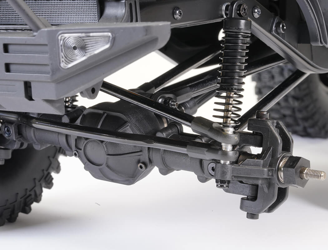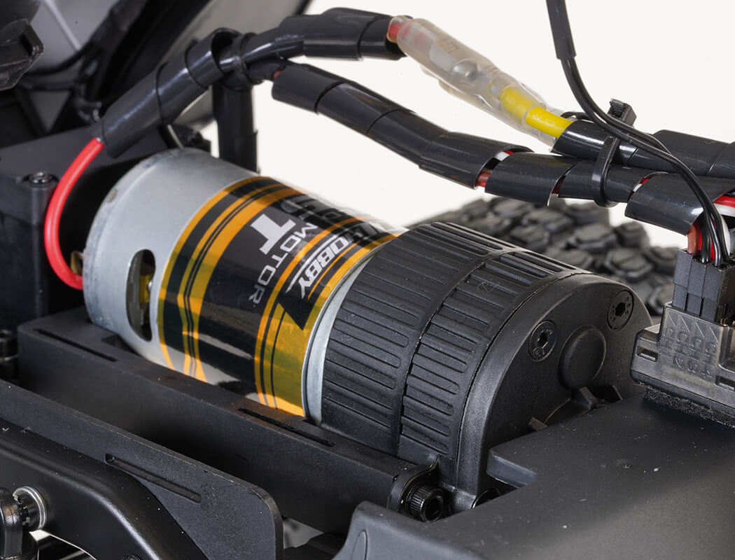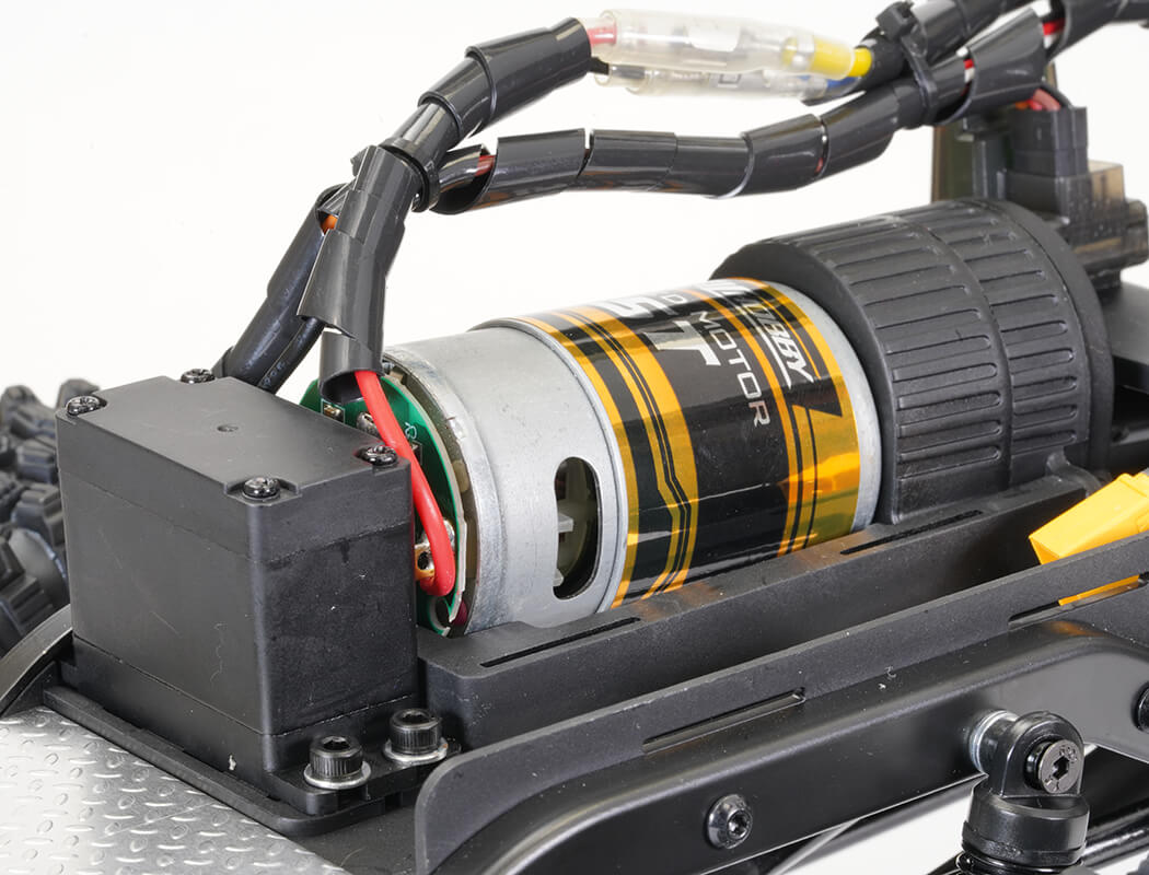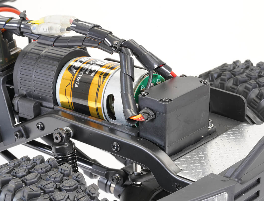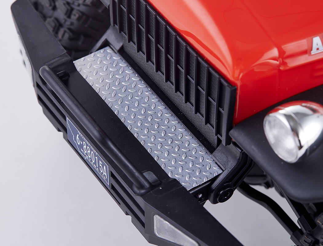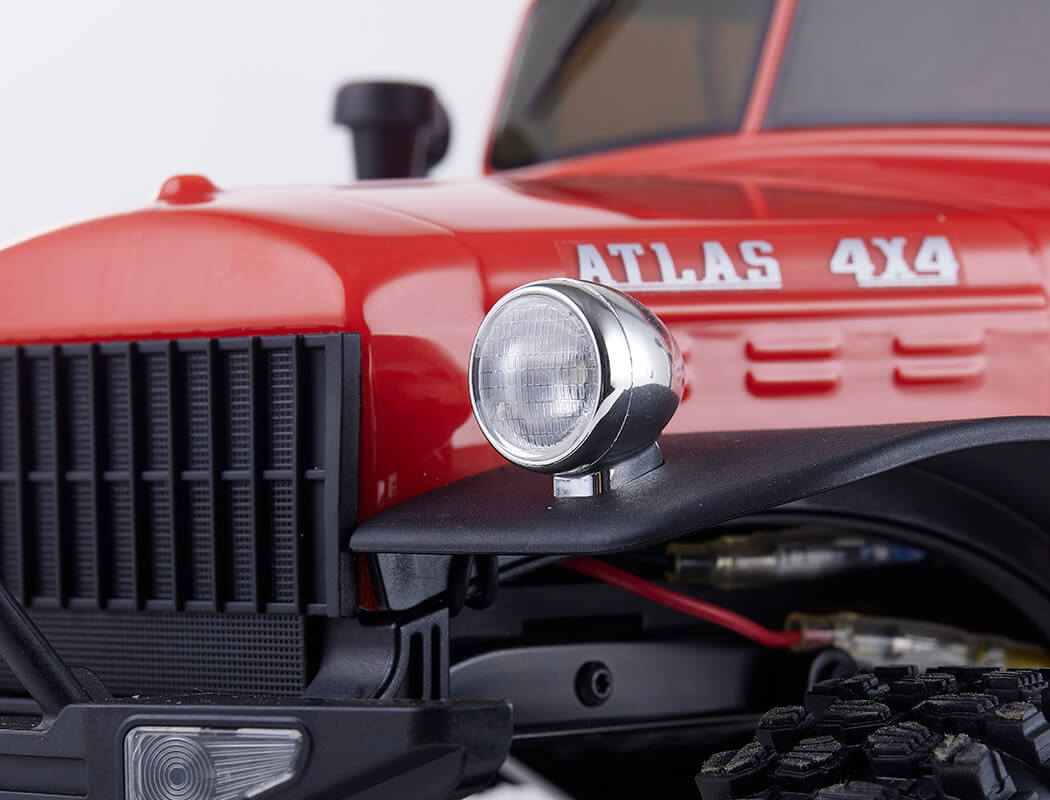 This 1/10 Atlas is designed precisely in the form of an off-road truck racer. The car body is moulded with PC plastic, which is light in weight and has a low center of gravity; the nylon roll cage at the back can protect the car shell during rollovers. The rigid metal frame and four-link suspension system ensure strong climbing ability. The chassis has proven reliability. In both dynamic and static aspects, the real vehicle has been painstakingly restored.