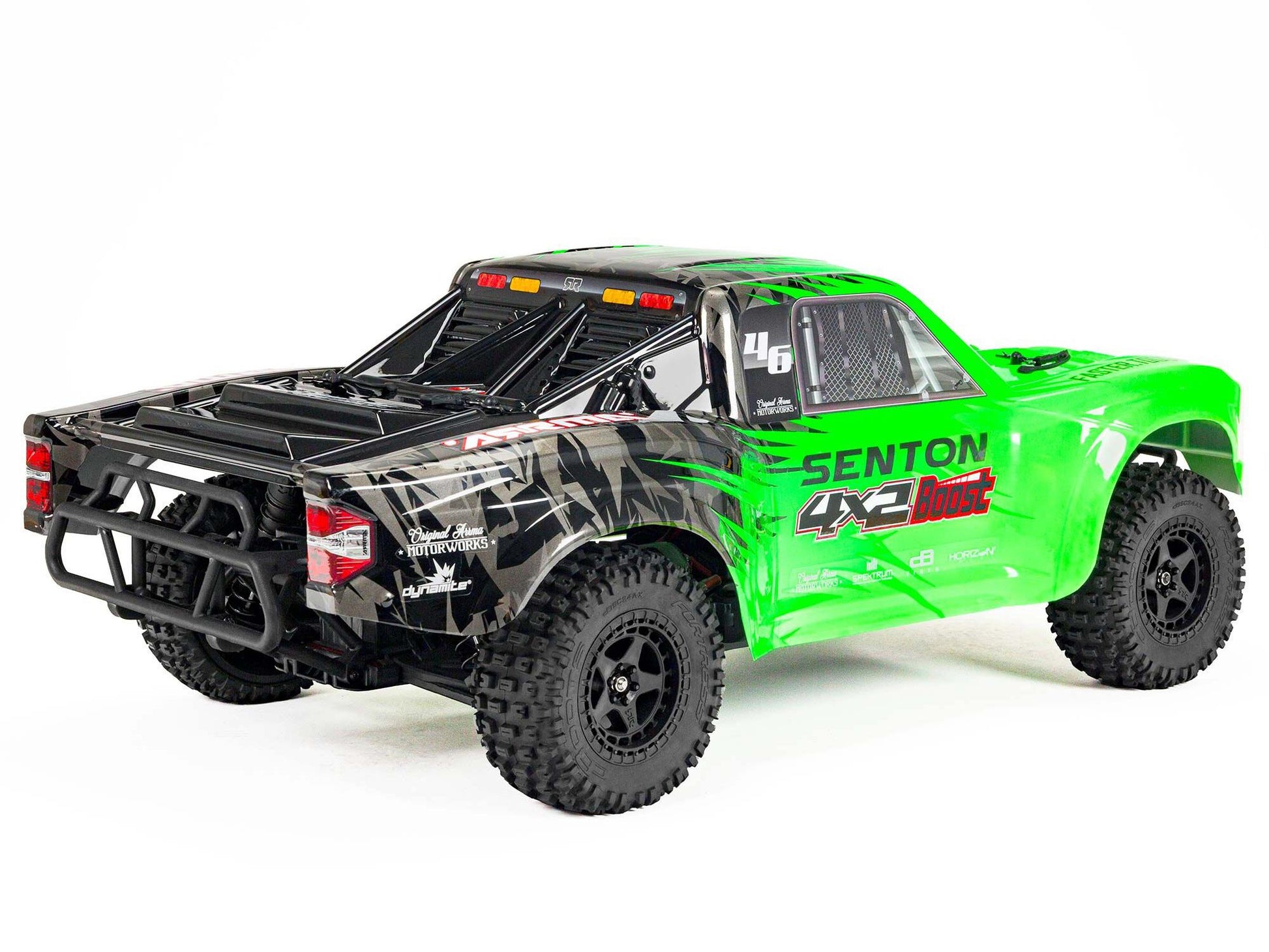 Even without those upgrades, the SENTON 4X2 BOOST 550 MEGA Brushed 2WD short course truck can reach speeds of 30+ MPH in optimum conditions using optional gearing. For all-terrain toughness, it includes a strong composite chassis and retained hinge pin plates; steering with more clearance for stones; a castellated slipper pad and sliding gear mesh; and rubber shielded bearings throughout. The SENTON 4X2 BOOST is engineered to outlast other beginner-level bashers.