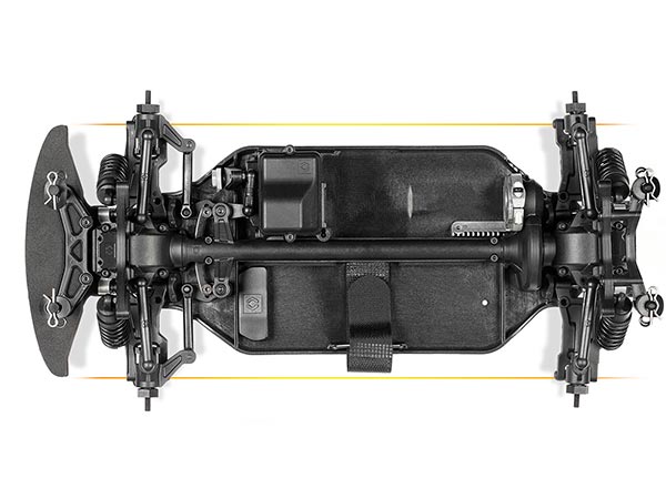 The Sport 3 main chassis is formed from a single piece of reinforced plastic and features the drivetrain tunnel molded right down the middle, just like a real car. It's a step beyond any plastic tub chassis car available today.