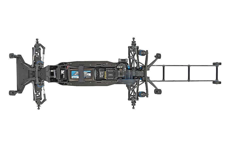 The mid-motor set up up shifts the weight distribution forward, reducing front-end lift. Additionally, the motor and tires share the same rotational direction, which produces quicker forward momentum to help you get a faster time across that finish line.